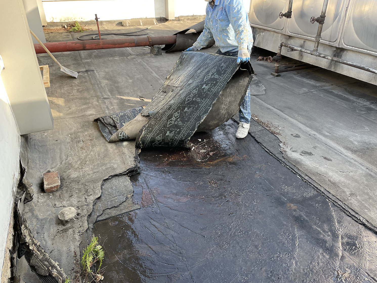 SBS改性瀝青防水卷材作為最近二十年的最常用的屋頂防水卷材,在使用了一段時間的過程中,也逐漸顯現(xiàn)出了他的弊端,SBS改性瀝青防水卷材施工對屋頂基面的水分有要求,需要基面很干燥,但是實際情況是屋頂?shù)幕婧茈y達(dá)到SBS改性瀝青防水卷材施工要求的干燥程度,這樣的情況下屋頂鋪貼了SBS改性瀝青防水卷材之后,基面的水分在夏季高溫的情況下形成水汽累積在防水卷材下面,SBS改性瀝青防水卷材就與基面分開了,就是所謂的雨傘式防水層,整個屋頂防水卷材沒有問題的話就可以起到防水作用,但是在以后由于地震或者其他因素,個別地方防水層被損壞了之后,水從這個部位漏到防水卷材下面去了,水就在防水卷材下面四周到處擴散,導(dǎo)致屋頂防水卷材下面到處都是水,防水卷材的防水作用就完全失去了防水作用。(下面就是屋頂原來做的SBS改性瀝青防水卷材,漏水了之后揭掉防水卷材之后看到防水卷材下面水到處竄)
