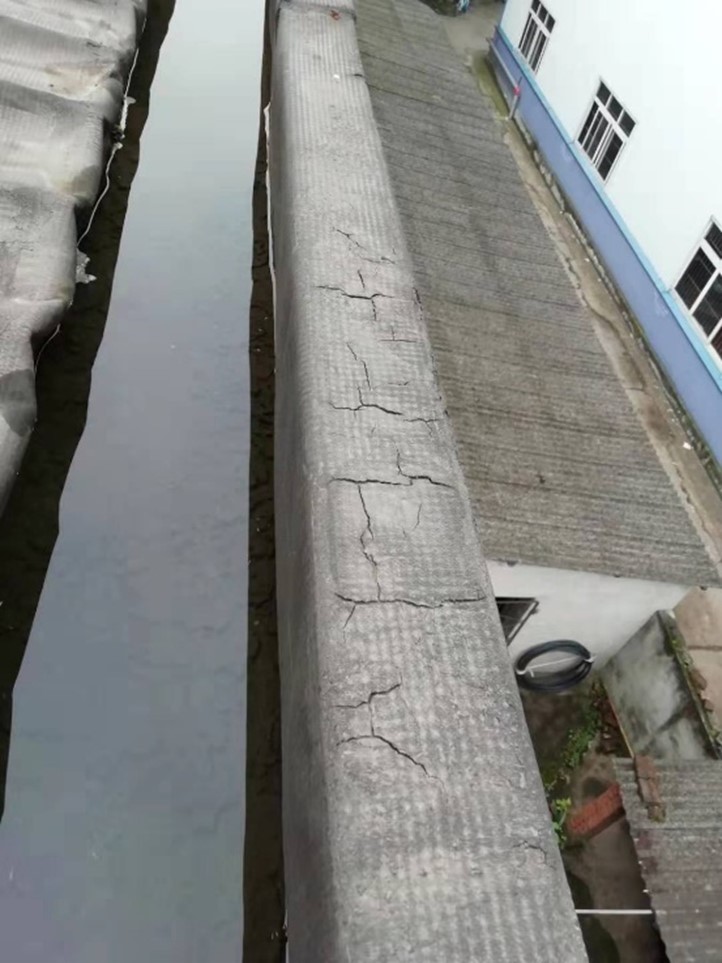 彩鋼頂表面采用SBS改性瀝青防水卷材施工的,兩年后改性瀝青防水卷材出現(xiàn)開裂情況嚴(yán)重