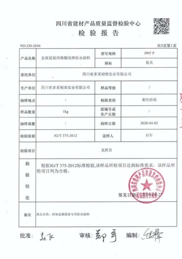 SYR金屬屋面專用防水涂料能在基層表面形成有強(qiáng)粘結(jié)力的彈性防水膜,與基層構(gòu)成一個(gè)剛?cè)峤Y(jié)合完整的防水體,能適應(yīng)建筑結(jié)構(gòu)的各種變形,從而達(dá)到長期防水抗?jié)B的作用。優(yōu)異的耐沾污和耐侯性,減少維護(hù)次數(shù),減低維修成本;優(yōu)異的隔熱反射性能,能延長基材的使用年限;耐老化、耐磨、耐紫外線、耐鹽霧、耐濕熱性優(yōu)異;