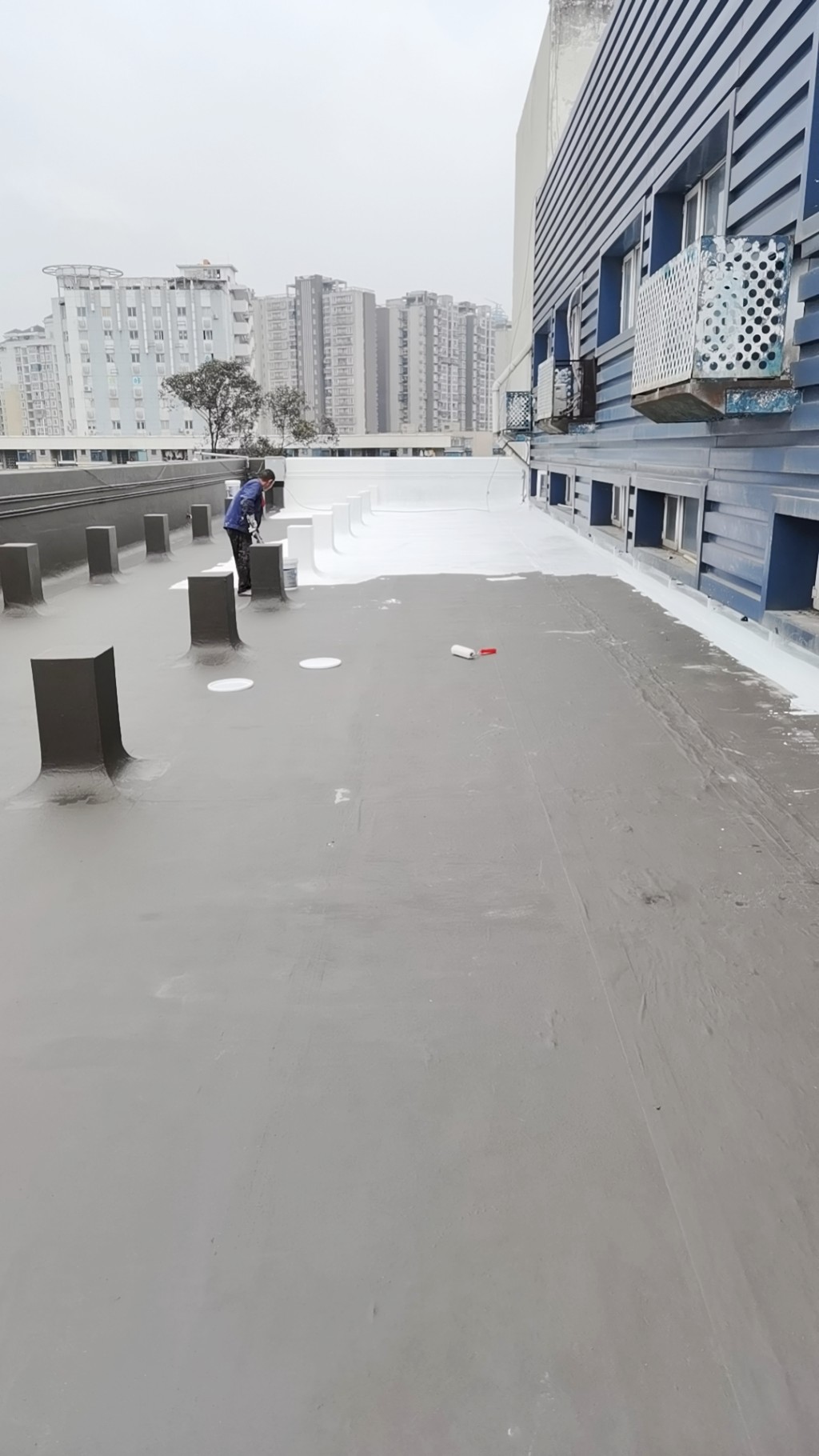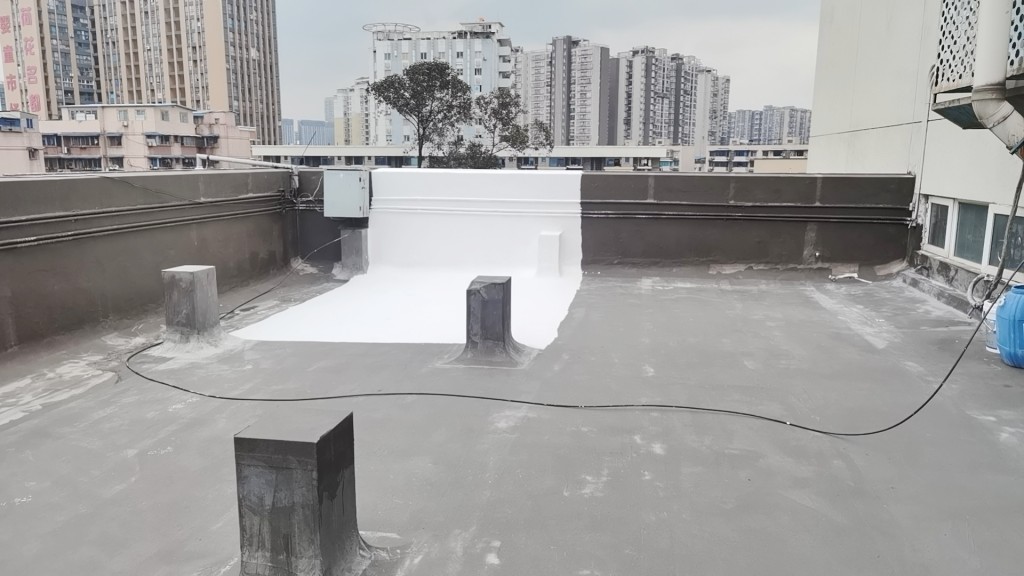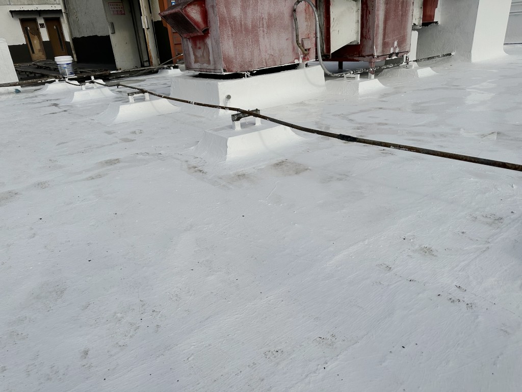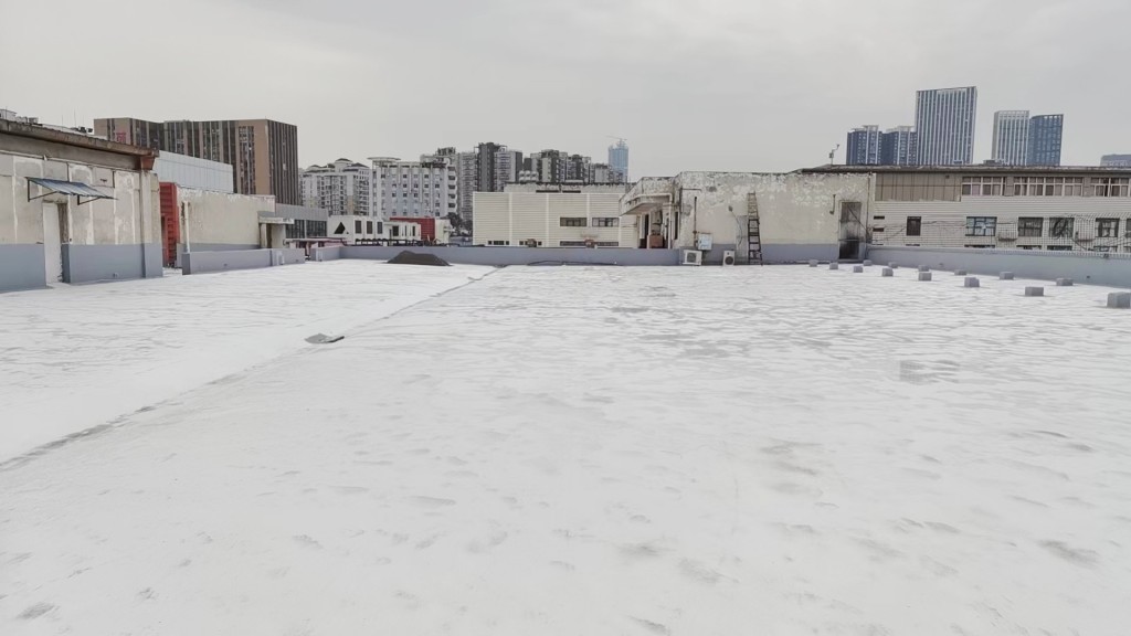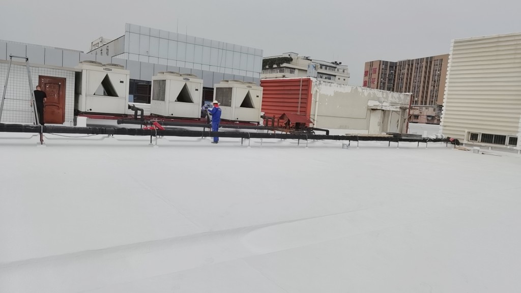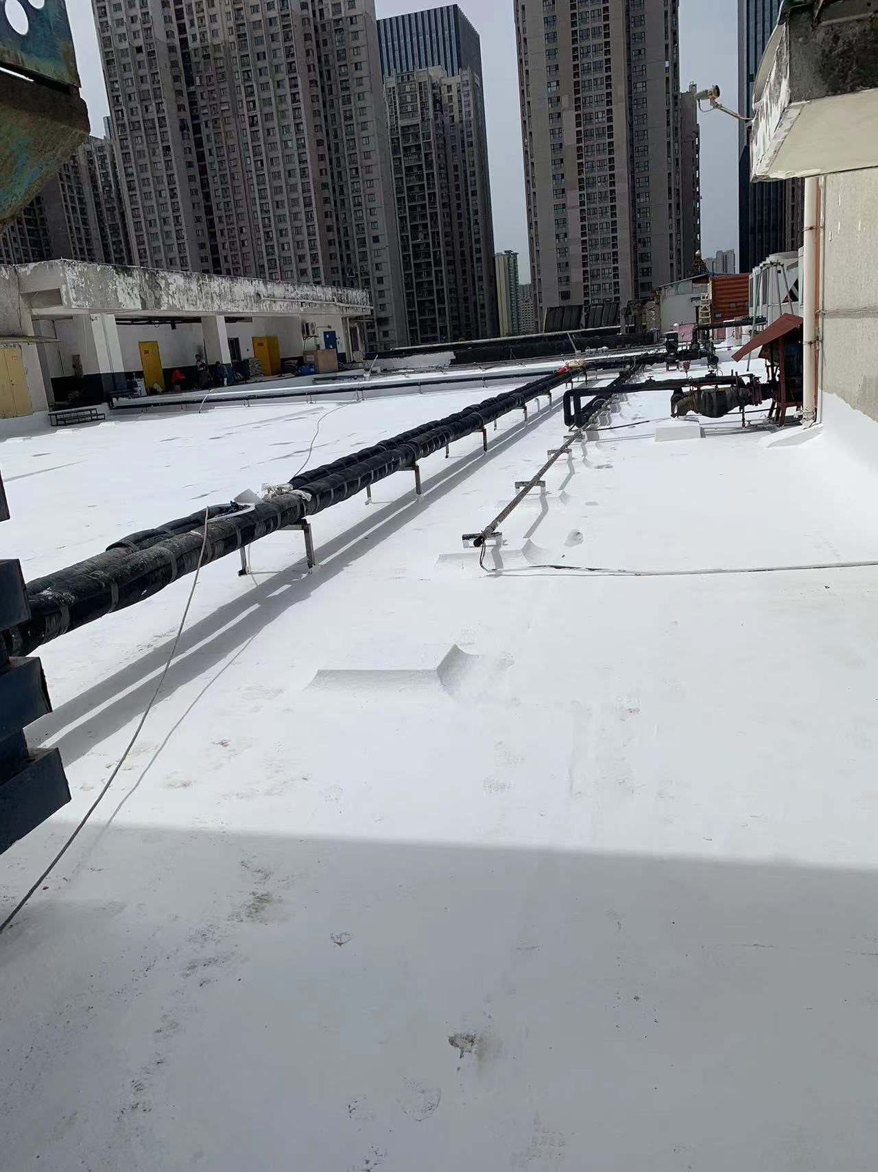 屋頂表面采用聚合物防水涂料、SYR金屬屋面防水涂料、聚酯布進行防水施工
