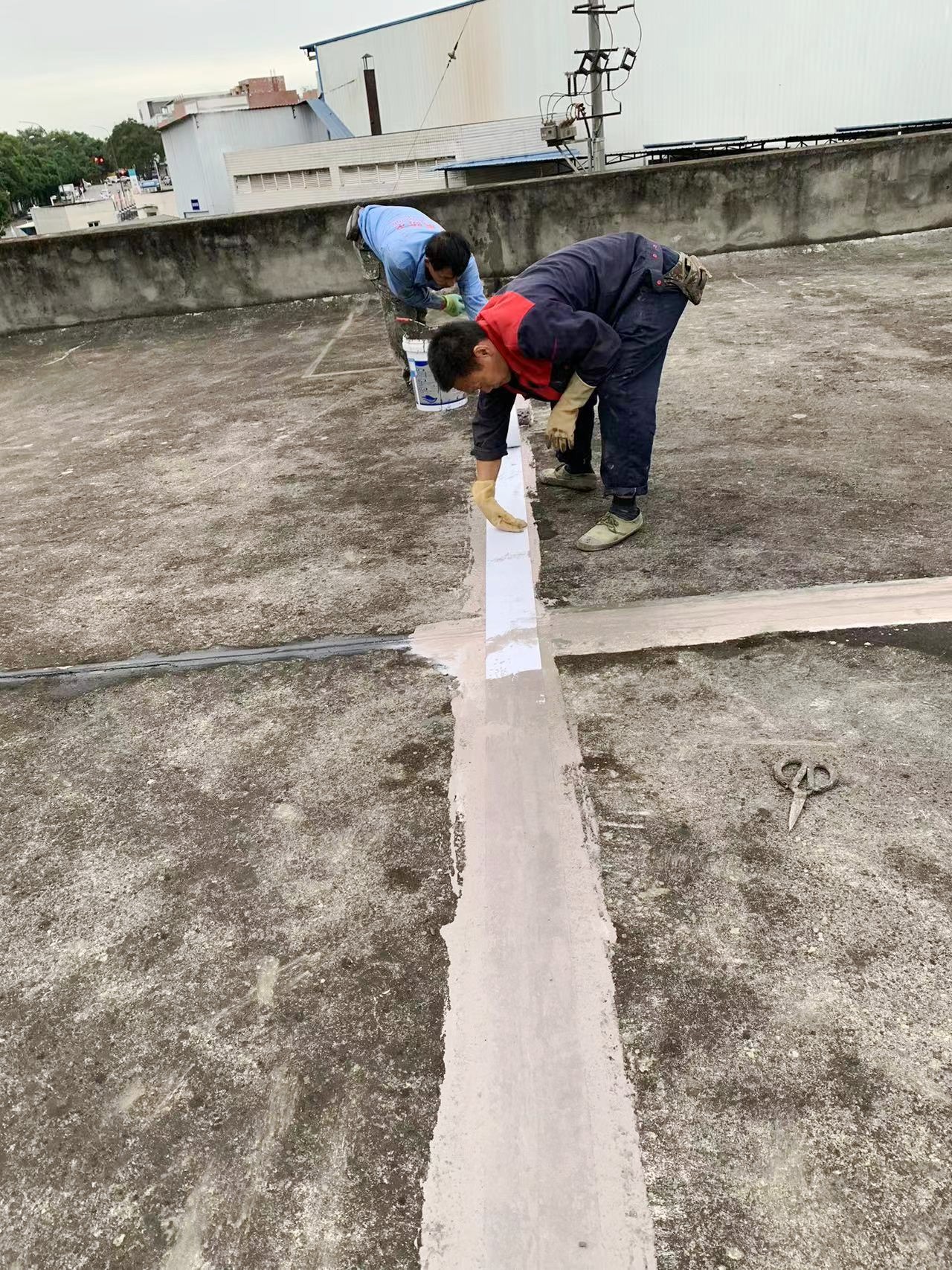 在施工前,施工團隊首先對屋頂表面進行了徹底清掃,確保基層干凈無塵。我們注意到屋頂的分隔縫部位是防水施工的重點,因此我們在屋面的分隔縫部位,采用了一布兩涂的施工工藝,以Ⅰ型聚合物水泥防水涂料配合縫織聚酯布進行處理,以強化該區域的防水性能。這種處理方式有效地提高了屋頂的防水性能,并延長了防水層的使用壽命。