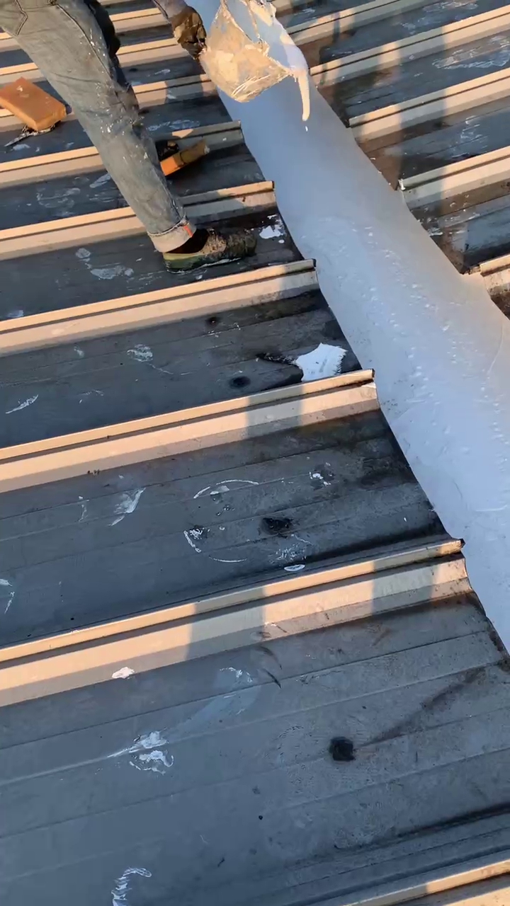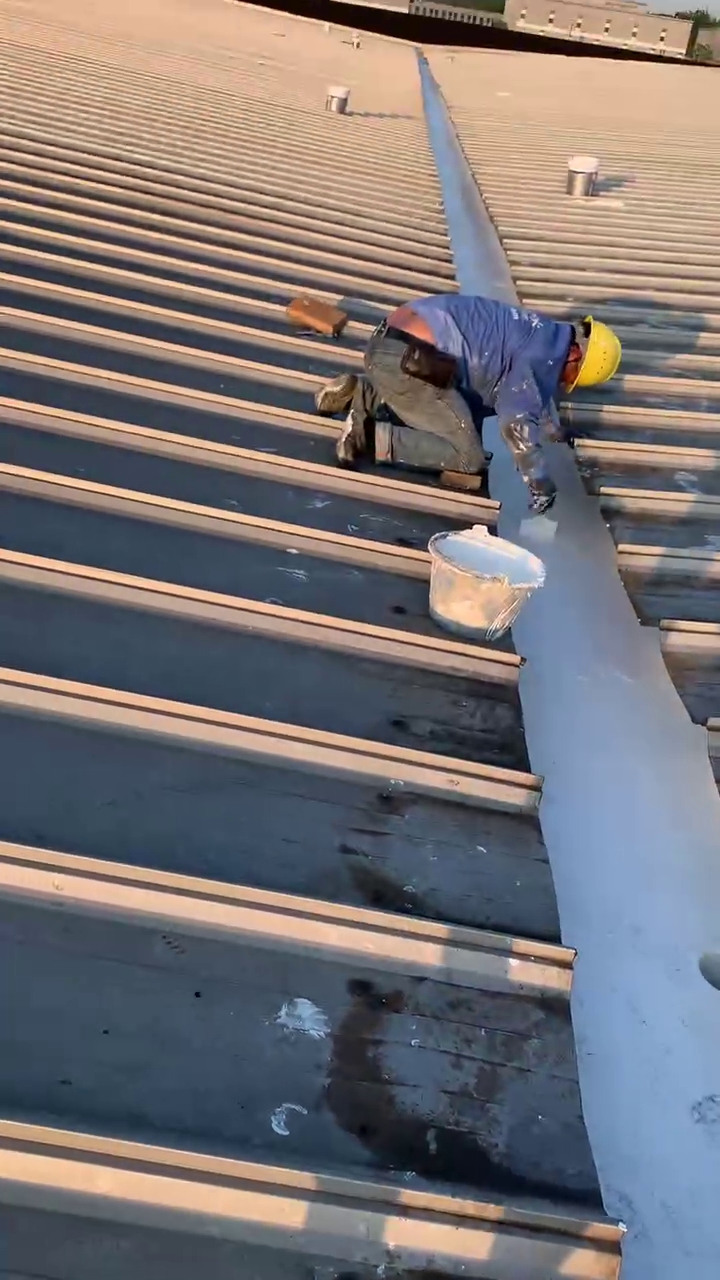 針對這一情況,成都蜀禹建筑防水工程有限責任公司迅速制定了科學合理的施工方案。他們首先對天溝內部進行了徹底的清理,然后使用彩鋼板插入已爛掉的下水管內,滲入漏斗進行固定。接著,他們采用SYR金屬屋面專用防水涂料配合縫織聚酯布進行防水防腐補漏施工處理。此外,為解決銹蝕問題,施工團隊在天溝內滿涂刷納米固銹劑進行基面固銹處理。待涂料干燥后,他們在天溝的底部及兩側面涂刷了SYR金屬屋面專用防水涂料并滿鋪貼專用縫織聚酯布,表面再涂刷SYR金屬面專用防水涂料。待所有涂料干燥后,他們又對表面進行了一次涂刷SYR金屬屋面專用防水涂料,使整個天溝得到了全面的保護。