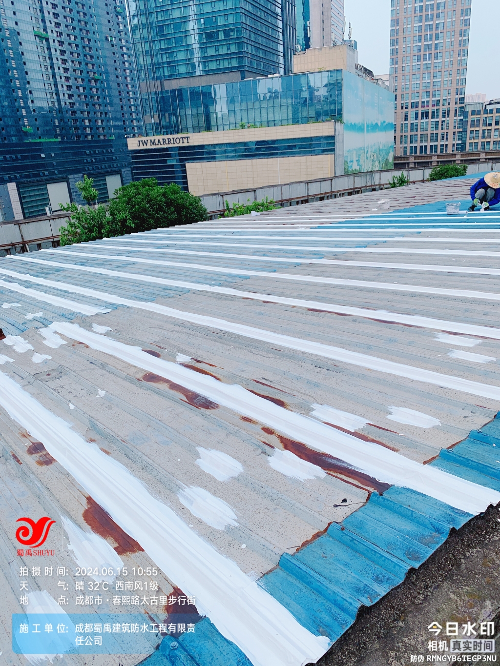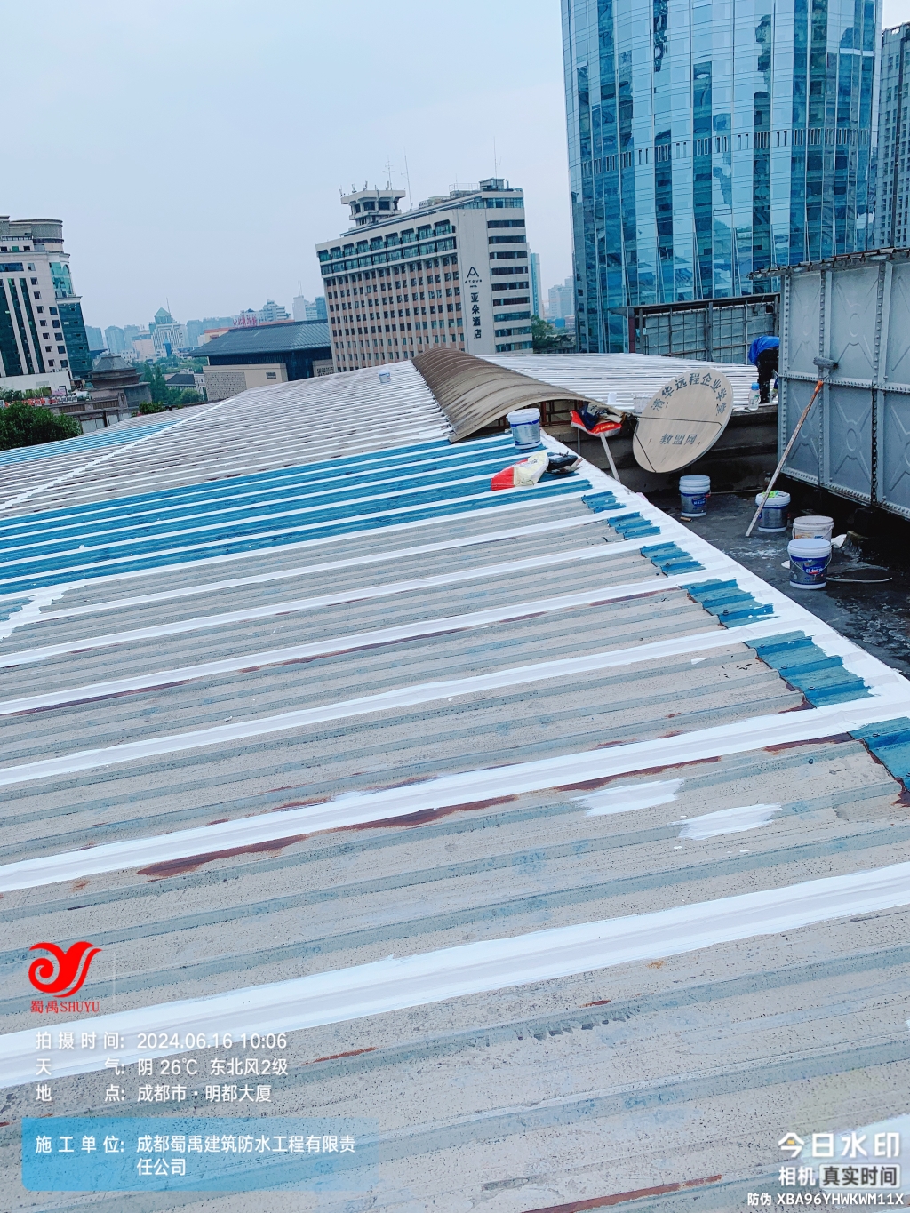 【成都蜀禹建筑防水工程有限責任公司工程案例宣傳】—— 明都大廈玻璃頂與彩鋼頂防水防腐翻新,重塑建筑防護新篇章
