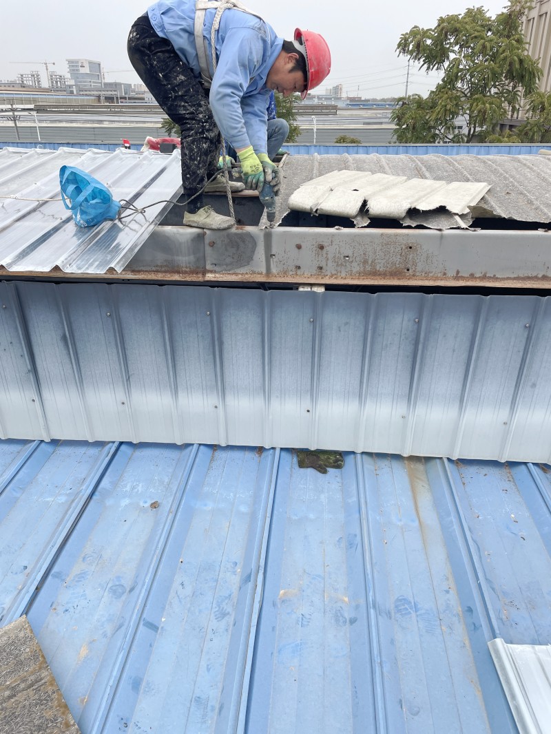 蜀禹技術工人憑借多年鋼結構屋面施工經驗,嚴格按照“拆除—清理—測量—安裝—檢測”流程操作。施工全程佩戴安全裝備,高空作業規范有序,未對廠房正常運營造成干擾。
