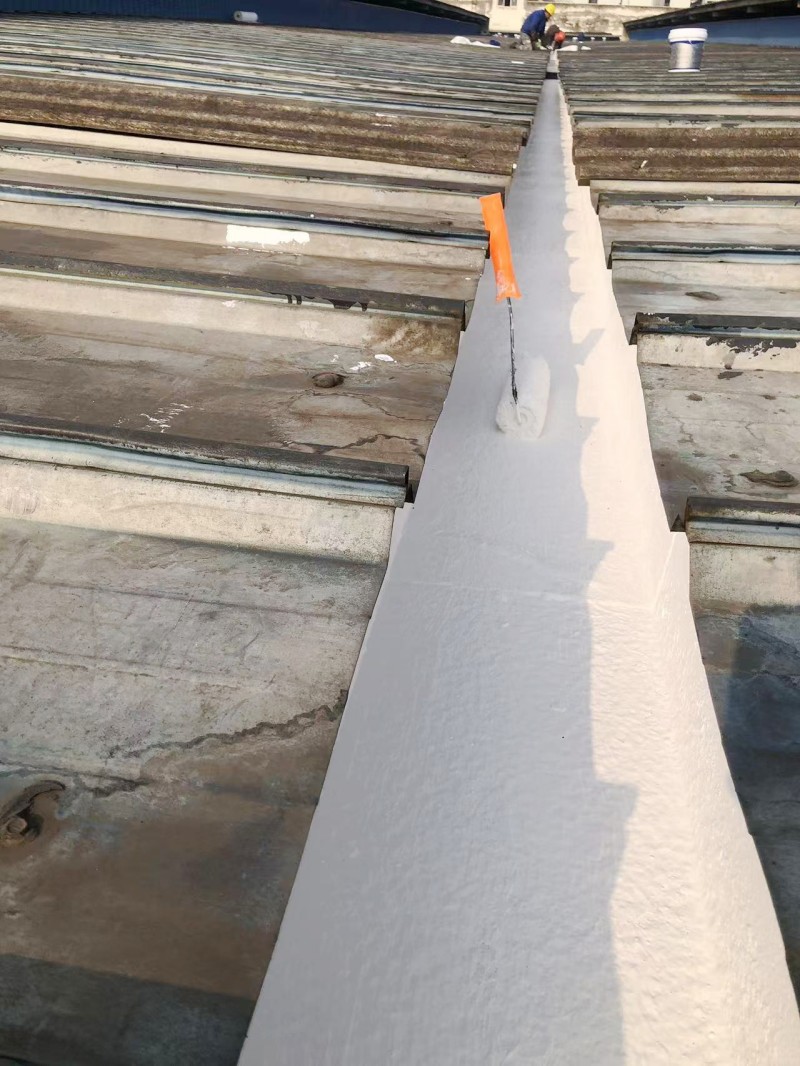 2. 重點部位處理:針對彩鋼瓦搭接縫以及固定螺釘部位,涂刷 15cm 寬的 SYR 金屬屋面專用防水涂料,形成初步的防水屏障。隨后,在這些部位鋪貼防水專用縫織聚酯布,利用聚酯布的高強度和良好的延展性,增強防水效果,防止因屋面變形導致的開裂漏水。接著,在搭接縫和固定螺釘表面再涂刷第二遍 SYR 金屬屋面專用防水涂料,進一步鞏固防水層。