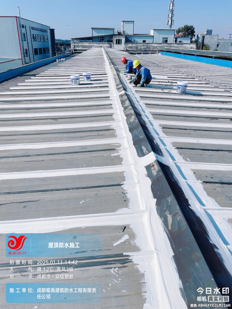 成都眾信塑膠 廠房鋼結構屋面防水補漏工程是成都蜀禹建筑防水工程有限責任公司在工業建筑防水領域的又一成功案例。我們始終堅持以客戶需求為導向,以專業技術為支撐,致力于為客戶提供高品質、可靠的防水解決方案。未來,我們將繼續秉承 “質量更優、服務至上” 的理念,不斷提升技術水平和服務質量,為更多客戶解決屋面防水難題,守護工業建筑的安全與穩定。